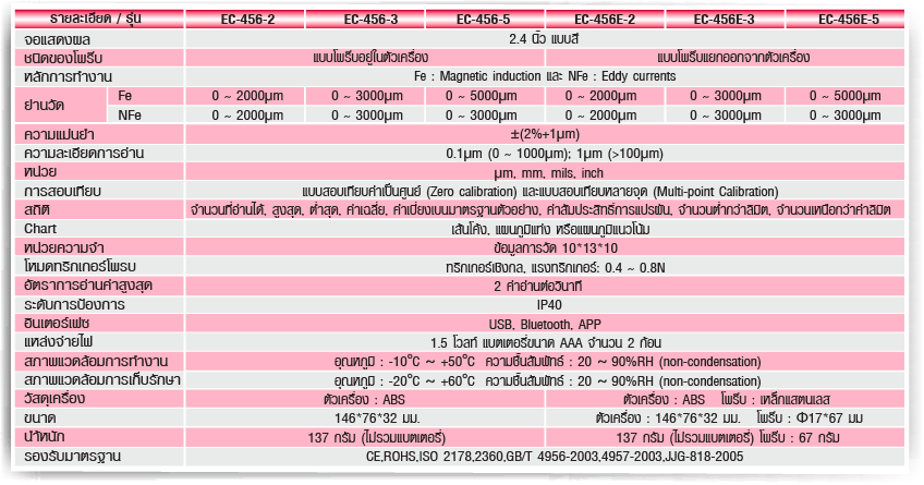 • มีทั้งโพรบในตัว (EC-456) และโพรบแยกออกจากตัวเครื่อง (EC-456E)